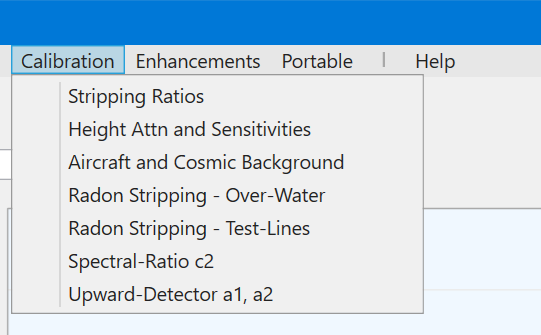 This menu facilitates access to all the tools required for calibrating airborne gamma-ray spectrometers: