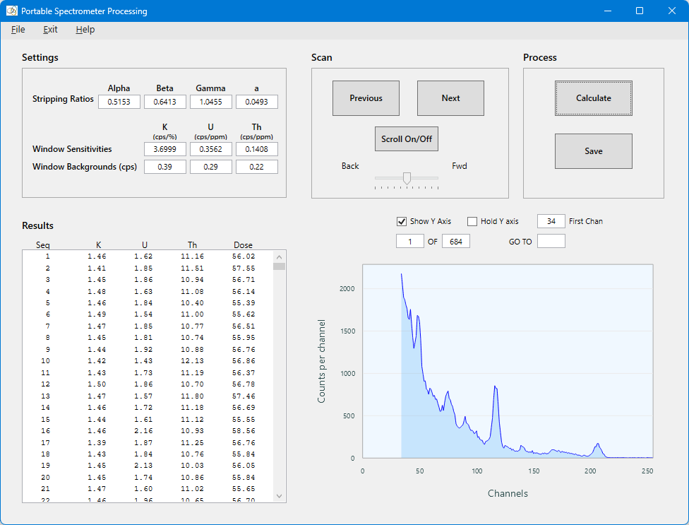 The Portable Spectrometer Processing tool is used to view and process portable spectrometer spectra. The spectra are read from an ASCII text file – see the spectra file in the portable processing demonstration dataset for the format of the file – "demo_data\portable_spectrometry\portable_processing\spectra_portable.txt". To use this tool: